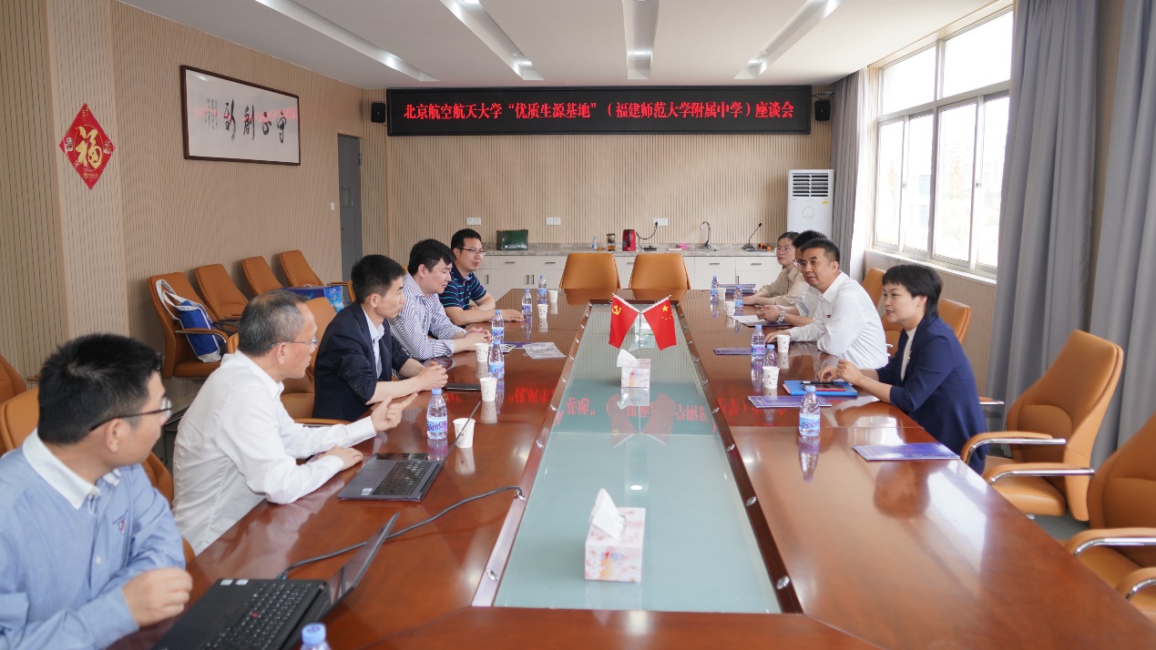 17日下午,招生组一行前往beat365官网优质生源基地福建师范大学附属中学调研交流,福建师范大学附属中学党委书记吴永清、校长温青等主要负责同志出席了会议。座谈会上,黄瑞勇分享了中国中学和中国大学多维度人才培养大数据。福建师范大学附属中学是北航老校长沈元先生的母校,沈元学院副院长孙玉泉特别介绍了北航沈元学院建院历史及人才培养相关情况。福建师范大学附属中学党委书记吴永清介绍了师大附中办学理念、学生培养等方面的特色做法,双方还就进一步推进优质生源基地合作、文化建设等方面进行了深入交流和探讨。