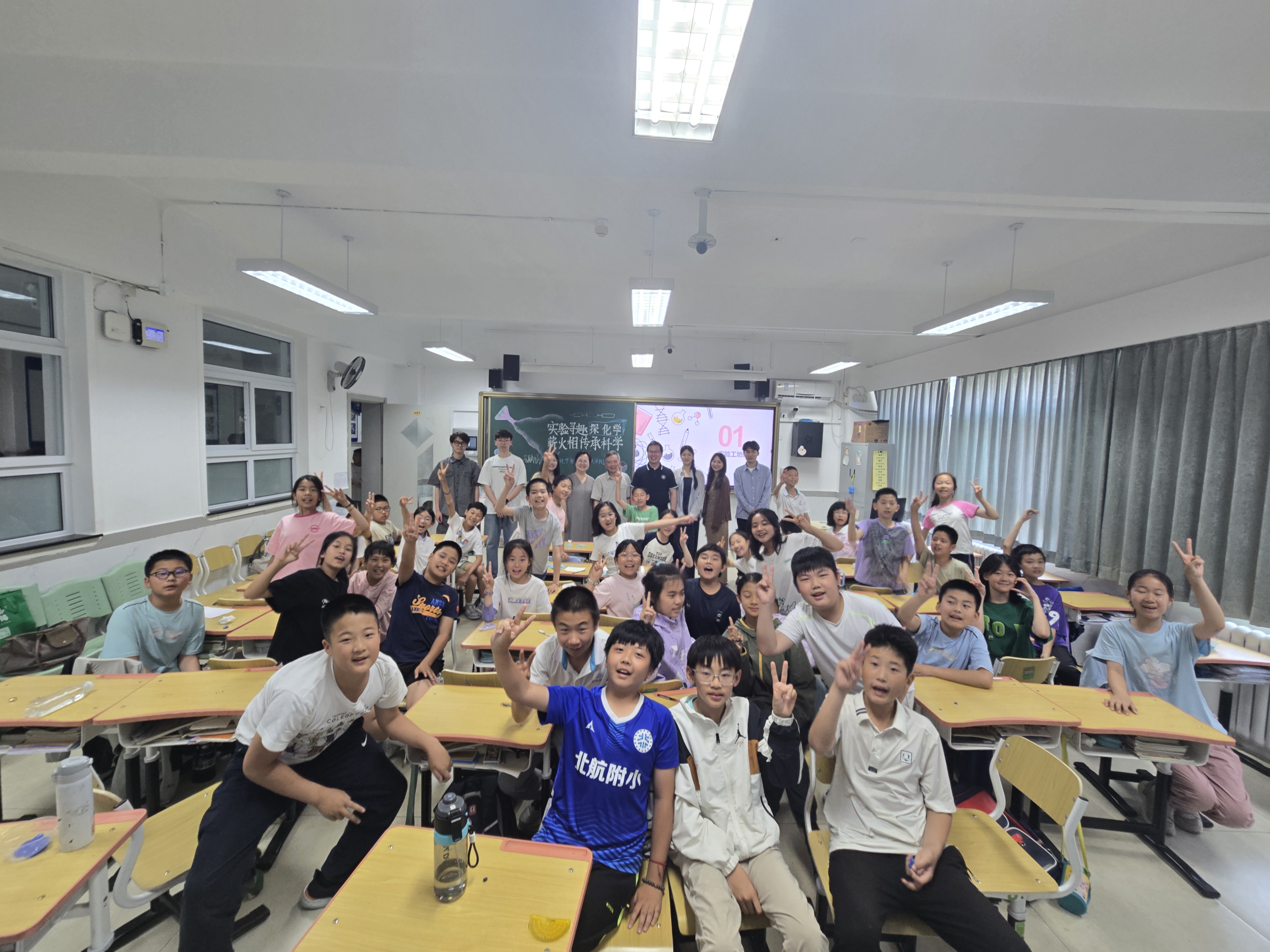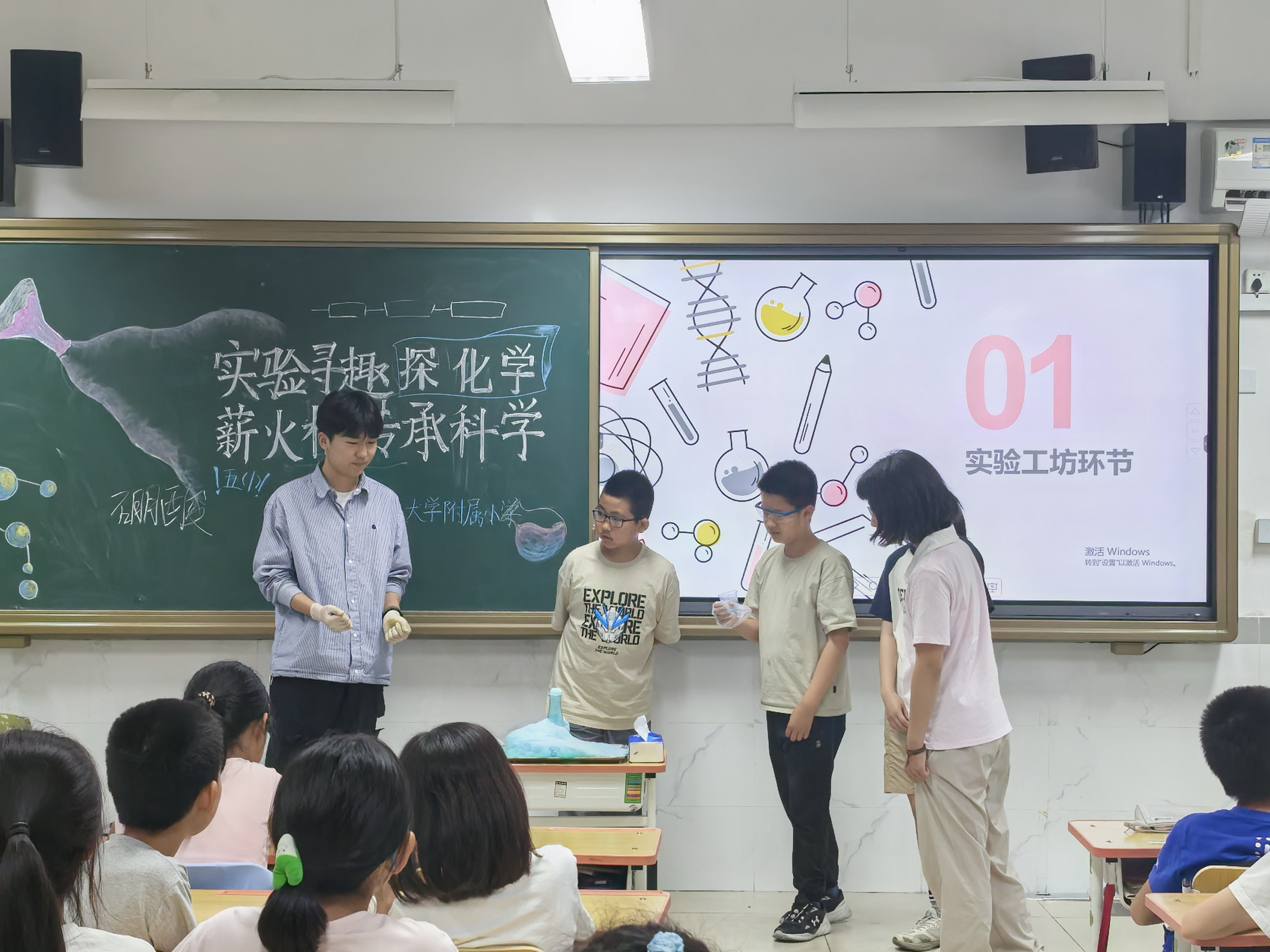5月28日下午,beat365官方网站关工委在实验学校小学部五年级1班,开展了以“老少携手点燃科学梦想”为主题的化学科普进小学活动。离退休工作处、beat365官方网站离退休支部、学生支部参与活动。