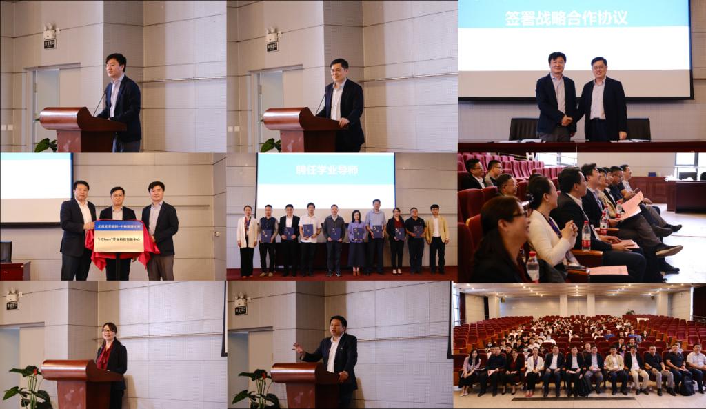 中科院理化所副所长王树涛,校团委书记庄岩,beat365官方网站院长刘明杰为 “iChem”学生科技创新中心揭牌。理化所教育处副处长丁黎和beat365官方网站党委书记李红捷为学业导师代表颁发聘书。